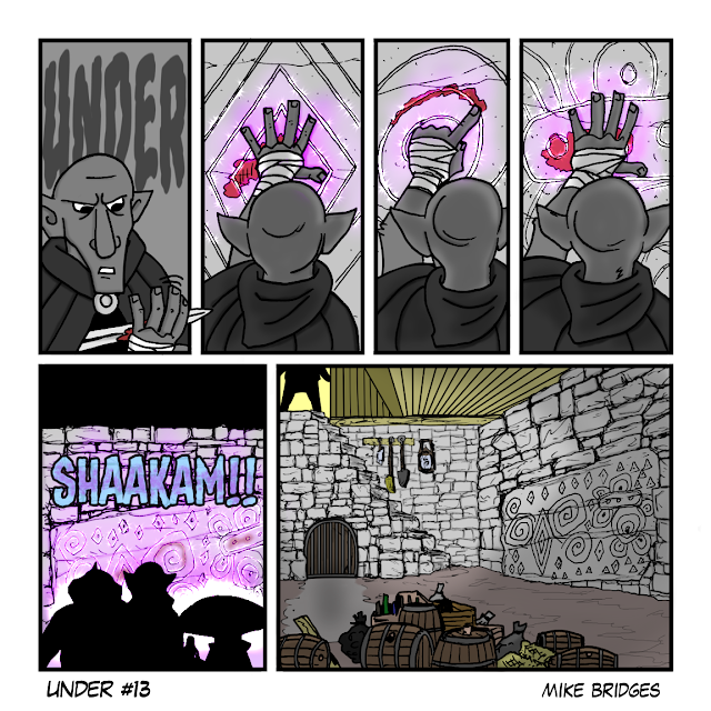 Welcome back to a new installment of my serial short story, Under. When last we saw the denizens they had sneaked into the cellar of a tavern in Nulb where they uncovered a cryptic megalith that the tavern was built over. Follow the links before for the rest of the story. What comes next? Check it out. Enjoy!